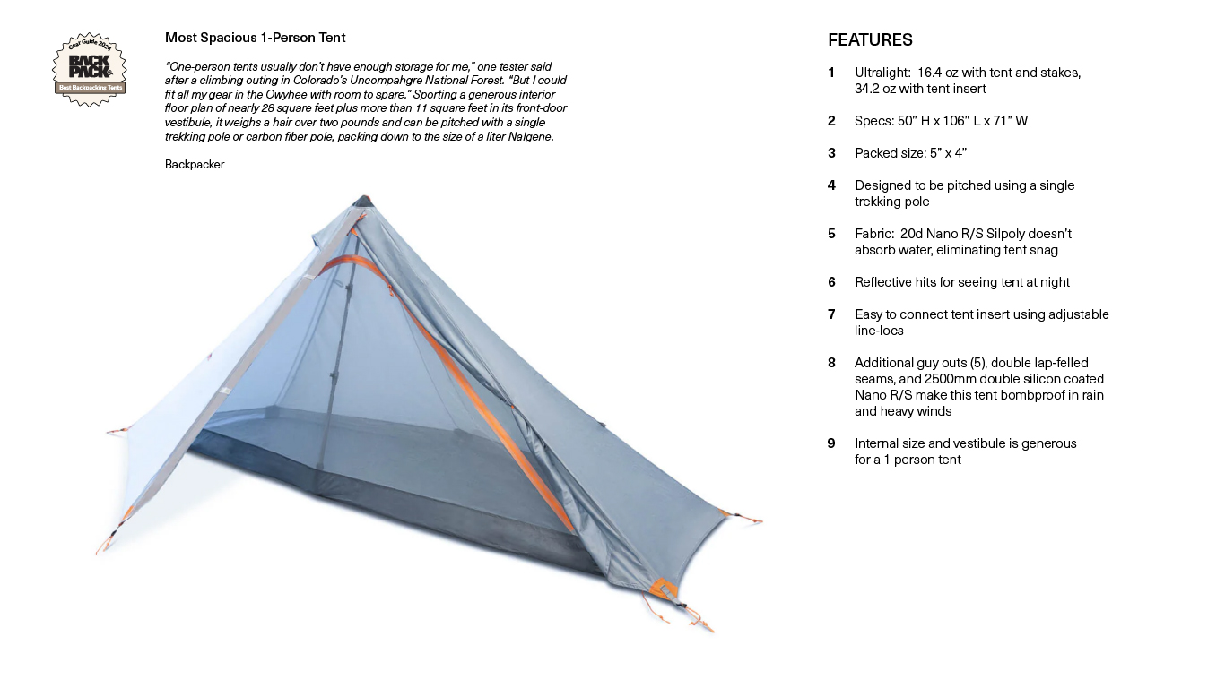 Project: Owyhee 1 Person Tent